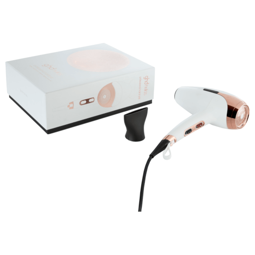 Speed meets style with the ghd Helios Hairdryer in Black. Lighter and faster than any other ghd hair dryer, the Helios makes styling easy and intuitive, with precision control and customised technology delivering smoother, shinier results.