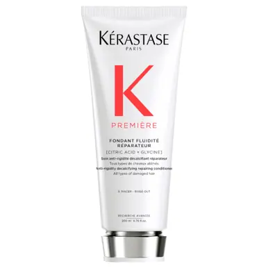 Experience the revolutionary Kérastase Première Repairing Fondant Conditioner, the first decalcifying conditioner designed for damaged hair.
